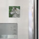 An educational magnet to help teach kids (and adults) about the wild Wolves of North America. This lucky cose-up shot of a male Grey Wolf shows noble features and lush Springtime coat. Male wolves are usually larger in stature and heavier than their female counterparts.