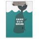 We only have one planet, so it is important we protect it. Enviromentally themed design with the message of the whales 'Save Our Oceans'. Looking for a gift for a marine biologist or whale lover? Cute sperm whale diving under the sea with a message 'Save Our Oceans' for kids. Whales ocean nautical marine elegant, chic, minimal enviromentally themed design save the ocean, save the whales home decor. Cute 'Save Our Oceans' kids Clipboard