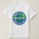 Save planet earth t shirts with custom text. Blue and green globe logo with white text template. Create clothing for global warming, climate change environmental issues, nature preserve, green energy, forrest protection, protests, plastic soup, recycle, recycling etc. Land sea drawing. Save the planet, save the earth! Custom clothes with your slogan or saying.