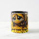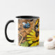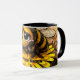 A mug featuring a caricature of a sad bee and text that says Save the Bees.