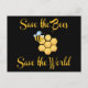 This environmental design features a honey bee flying by a honeycomb and the caption "Save the Bees Save the World." Save the honey bees. No pesticides.
