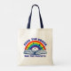 Fight censorship and book banning, and spread the message everywhere you go with this "Save the Books Ban the Fascists" budget tote bag. Though the message is strong, the bag is cute with its colourful rainbow graphic, welcoming open book, soft bubbly typography, and fun navy handle.