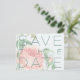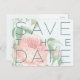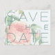 This Save the Date announcement postcard template offers an elegant watercolor floral background in teals and pinks with an oversized font and customisable copy, just click the "Personalise" button to make this your own and congratulations, enjoy!