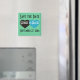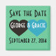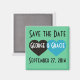 This Save the Date refrigerator magnet features side-by-side black and turquoise hearts on a light turquoise background overlaid by template text for the names of the bride and groom. The words "save the date" appear above the hearts, and the date appears below. Design can be customised for an engagement party, bridal shower, rehearsal dinner, wedding, anniversary or valentine's party save-the-date or party favour.