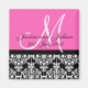 Save The Date Black/Pink Monogram Damask Trellis Magnet