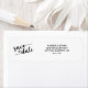 Save the Date return address label black and white with elegant script typography.