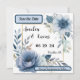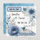 Dusty blue floral design with gold frame is perfect for a spring or summer wedding and beautiful way to announce your big day.