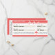 Perfect for destination weddings, this personalised save the date boarding pass reminder features a simple red and white ticket theme with space to add the details of your wedding.