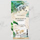 Tropical Island Destination Beach Wedding Boarding Pass Ticket Gold Plane Save the Date with heart and plane icon with tropical leaves