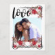 A romantic and carefree Boho Chic Save the Date design frames your favourite couple's photo. Red roses and leaves intertwine with Victorian accents to create three corners of the frame. Love is written in an open and airy font. The back of the Save the Date has the save the date written in the same beautiful font, your return address and wedding details. Chic and modern way to share your news!