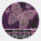 Save the Date Butterflies Swirls Pink Black &White Classic Round Sticker