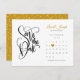 This pretty save the date card features a calendar and pretty gold love heart highlighting your special date. The reverse features gold heart confetti. Designed by Thisisnotme© ***TO MOVE THE HEART TO YOUR SPECIAL DATE, LOOK TO THE RIGHT OF THE PRODUCT IMAGE TO WHERE IT SAYS “PERSONALIZE THE TEMPLATE”. IF YOU CLICK ON THE BLUE “DETAILS” TEXT YOU'LL SEE WHERE YOU CUSTOMIZE THE TEXT. AT THE VERY BOTTOM, IT SAYS “CLICK TO CUSTOMIZE FURTHER”. CLICK THAT AND YOU'LL BE ABLE TO MOVE THE HEART TO THE DATE YOU WANT.***