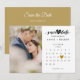 This elegant save the date card features your photo, a calendar and pretty gold love heart highlighting your special date. The reverse has additional save the date details, including your wedding website address. Designed by Thisisnotme©
