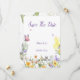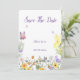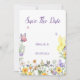 SAVE THE DATE CARD WITH WILDFLOWERS AND BUTTERFLIES, PERFECT FOR WEDDINGS OR BRIDAL SHOWERS, SPRING AND SUMMER.