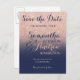 Save the Date Chic rose gold glitter navy blue Announcement Postcard