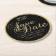 Save the date coasters custom designed champagne damask with black panel overlay and golden save the date typography. Personalised with an inspiring quote of how the couple met. "We found each other not by chance, but by creating the feeling as if." A unique way to announce your wedding day that may be customised to fit your party theme.