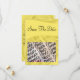 This Elegant "Save The Date" announcement with matching items is designed with a broken yellow spiral digital art background and a complementary colour wavy banner across the top front. The design can serve for any occasion when you fill in the template fields with your details, remove unwanted information and/or click the orange Customise it! button to select a font style, size and colour you prefer on the front and back.  On the front, replace the template photo with your photo and it's done.