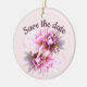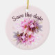 Beautiful save the date custom text and background color ornament with lovely pink flowers.