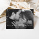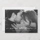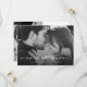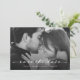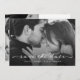 This simple and stylish wedding save the date photo card features delicate, white elegant modern script with two of your favourite personal photos. Further wedding details and information and a QR code can go on the back, with a minimalist black and white design.