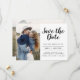 Modern and Elegant Minimalist Photo Save the Date Wedding Postcard. The save the date invitation card includes modern hand lettered script typography with a chic and simple design that you can add your customised engagement photograph picture to.