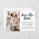 Modern and Elegant Minimalist Photo Save the Date Wedding Postcard. The save the date invitation card includes modern hand lettered script typography with a chic and simple design that you can add your customised engagement photograph picture to.