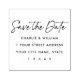 Elegant return address rubber stamp featuring the text "Save the Date" in an elegant script font. Below is your name and return address.