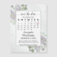 These beautiful magnetic cards will make it easy for your guests to save the date for your upcoming wedding. The elegant boho chic design features a white frame with a calendar of your wedding date with a heart around your special day. Your names are displayed in fancy script lettering and the title is written in calligraphy. Around the frame are bountiful sprigs of eucalyptus leaves and lavender flowers on a marbled background. Rustic and homey yet sophisticated, these magnetic cards are sure to please.