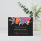 Floral Save the Date Postcards with watercolor fiesta flowers, which can be customised for any occasion. This black card has an abundance of colourful flowers, elegant pink script and modern typography. A beautiful floral design including peony, rose, fuchsia, lily and greenery in shades of pink, purple, orange, yellow, green and blue. The template is set up ready for you to personalise the postcard with your name, special date and custom text. This design coordinates with our quinceanera collection - please browse our store for invitations and party supplies.