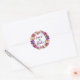 Very pretty way to seal your Save the Date envelopes. A pretty floral wreath of spring flowers and lots of greenery frames Save the Date. Save the Date is written in a pretty purple script. The flowers are deep purple, rosy red and soft pink with yellow accents. There's roses and peonies and cute little buds. The variety of colours will coordinate with lots of different wedding colours. You can change the colour of Save the Date and the background as well.