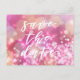 NewParkLane - Wedding Postcard, with a pink shimmery, sparkling background and 'Save the Date' in elegant typography.