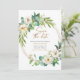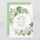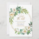 This beautiful save the date invitation features beautiful watercolor greenery, white flowers, and a gold wreath. So elegant and pretty! Matching party items are also available.