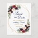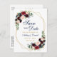 Save the Date Gold Frame Burgundy Blue Floral Announcement Postcard