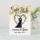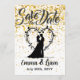 Save the date with gold glitter and bride and groom silhouette. Editable.