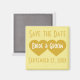 This refrigerator magnet features a pair of solid gold hearts overlaid by the names of the bride and groom with the words "Save the date" above and the date below. Click ""Customise" to re-size/re-position gold hearts, change background colour, and/or revise text. Personalise font style, size and colour. Design can be customised for an engagement party, bridal shower, rehearsal dinner, wedding, anniversary or valentine's party favour or save-the-date. Gold hearts are especially appropriate for 50th anniversary celebrations.