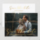 save the date gold trendy scrip wedding photo card
