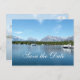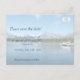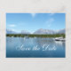 Save the date wedding postcards, Grand Teton National Park. Beautiful wild nature landscape photography of trees, lake, mountain and blue sky.