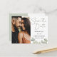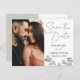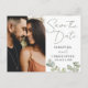 Modern save the date announcement is prefect to get your wedding plans in motion. It features a photo template and large 'save the date' typography in sage green on a white background. Added to this design is an original watercolor eucalyptus flourish. Customise with your own detials.