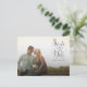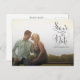 Gorgeous neutral grey/grey cursive script typography on the front of this designer postcard which you can upload into with your own engagement/save the date photo portrait. Easily and quickly personalise this designer professionally printed save the date postcard here and now by just typing over the example text and adding your own photograph. Elegant, chic, simple and classy navy script/cursive typography