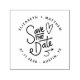 Elegant save the date rubber stamp with a handwritten decorative script "save the date" and a cute heart in the middle. All information is encircled with an elegant script font ready for easy personalisation.