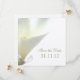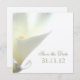 Customisable Save the Date invitation with white calla lily photograph. An elegant choice to announce your wedding date. Personalise it with your wedding party details.