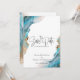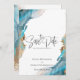 Save the Date Marbled Ink Turquoise and Gold Invitation