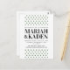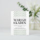 Small forest green triangles over a clean white background, make this minimal save the date announcement the perfect way to invite your guests to your outdoor wedding! Modern and sleek lettering keep this invitation simple and clean while the triangles can represent mountains or trees. Personalise the invitation by adding a photo on back, as well as all your wedding information.