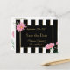 Save the Date Modern Black Stripes Pink Mums Announcement Postcard