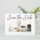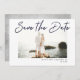 Save the Date Wedding Announcement. Modern simplicity pen stroke handwriting script text over centred photo. Optional wet sand backer. Completely versatile do-it-yourself style layout. Easily adjust the size, style and placement of all text elements. White mist filter is used for display, but you can change this by clicking on the advanced Customise mode.