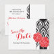 Save the date wedding dianthus modern luxe, black, white and a splash of bright red postcard. Personalise with your own wedding details. Designed by Sarah Trett.