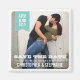 Modern, yet with a rustic flair, a photo of the beautiful couple fills the frame, and a trendy aqua teal banner holds the month, day and year of the wedding date. A perfect keepsake magnet for letting guests know about the engagement and the wedding date.