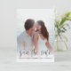 Your 5x7 Engagement Photo is featured with a simple, elegant handwritten calligraphy font text, "Save the Date" and your names, wedding date and location. You can easily change the background colour or design.