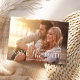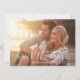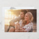 This design features an save the date photo card perfect for weddings, with an elegant, modern minimalist, simple, typography design, A classy, calligraphy script, with a scannable QR code, perfect for any couples photo.