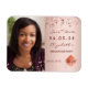 A photo Save the date magnet card for a graduation party. On front: Add your own vertical size photo of the graduate. A rose gold, blush background colour, decorated with faux gold stars. Personalise and add a name and date. The name and the text: Save the Date are written with a modern hand lettered style script.