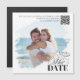 This modern magnetic save the date features your photo with elegant typography and graceful calligraphy script, creating a timeless wedding design that’s both stylish and functional. The simple magnet format makes it easy for guests to display on their fridge, while the included QR code links directly to your wedding website for convenient access to event details. A perfect blend of elegance and practicality for today’s modern couple.